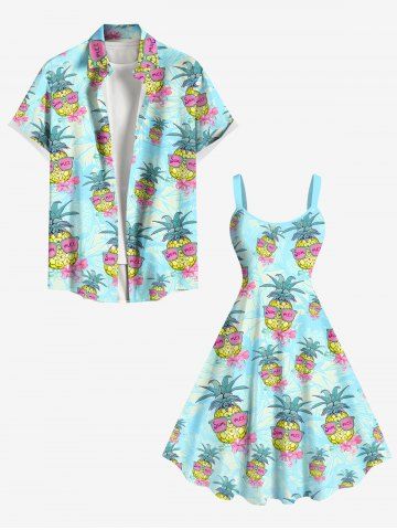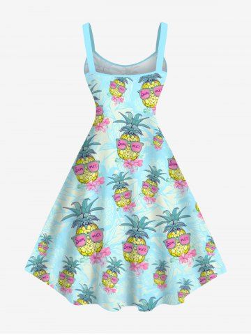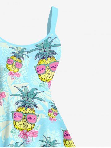 Plus Size Pineapple Floral Sunglasses Print Hawaii A Line Tank Dress - Light Blue - 2x