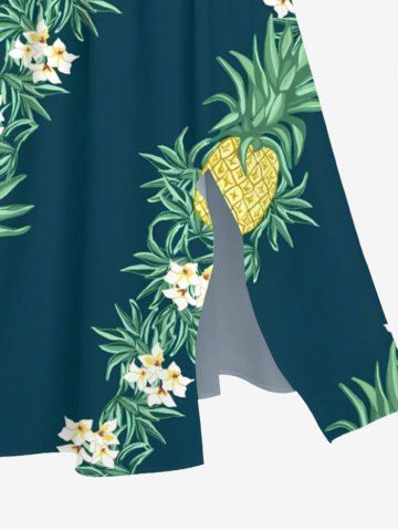 Plus Size Pineapple Floral Tropical Leaves Print Hawaii Split Pocket A Line Midi Dress - Green - 5x