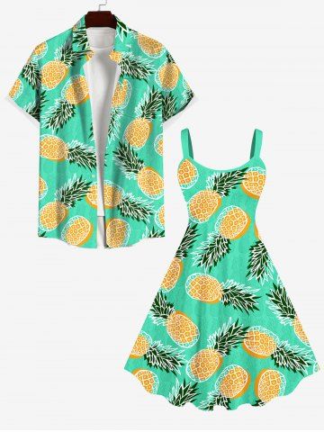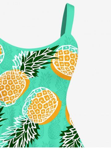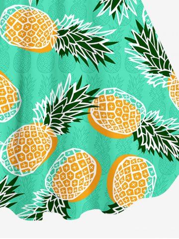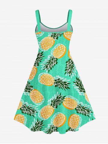 Plus Size Pineapple Fruie Print Hawaii Backless A Line Tank Dress - Green - L
