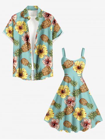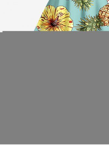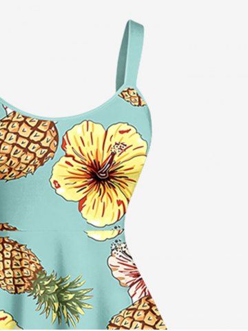 Plus Size Pineapple Hibiscus Flowers Print Hawaii Tank Dress - Light Green - Xxs