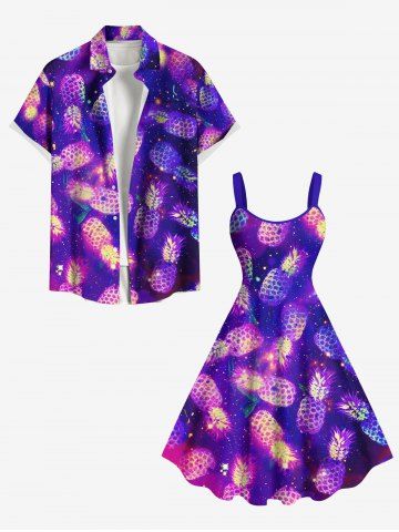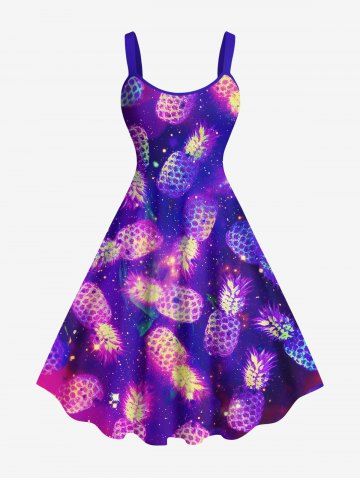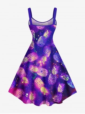 Plus Size Pineapple Ombre Galaxy Print Hawaii A Line Tank Dress - Purple - M