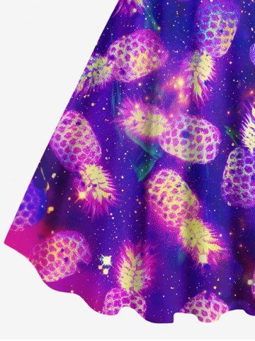 Plus Size Pineapple Ombre Galaxy Print Hawaii A Line Tank Dress - Purple - 4x