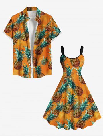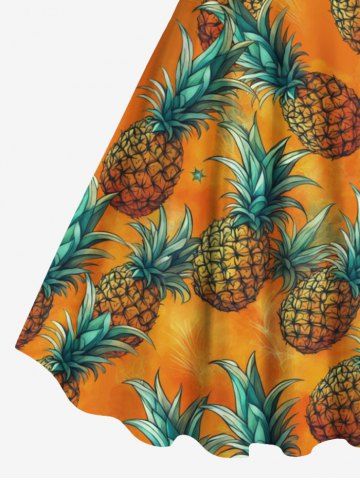 Plus Size Pineapple Print Hawaii Ombre A Line Tank Dress - Orange - 5x