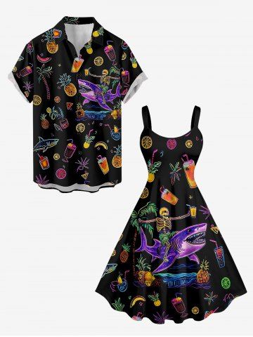 Plus Size Pineapple Skeleton Fruit Juice Coconut Tree Print Hawaii Tank Dress - Black - 1x