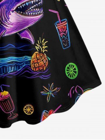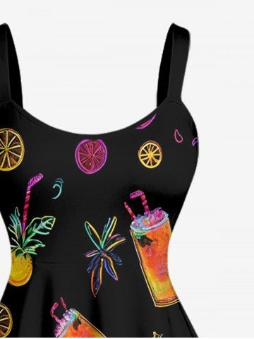 Plus Size Pineapple Skeleton Fruit Juice Coconut Tree Print Hawaii Tank Dress - Black - 5x