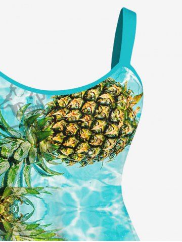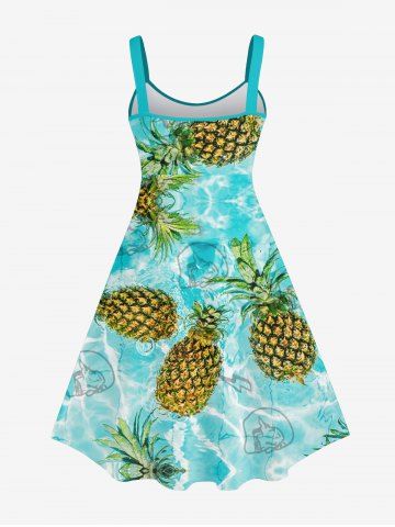 Plus Size Pineapple Skull Lightning Print Hawaii Tank Dress - Light Green - M