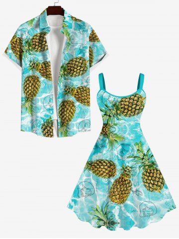 Graphic Dresses > Plus Size Pineapple Skull Lightning Print Hawaii Tank Dress