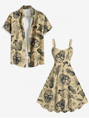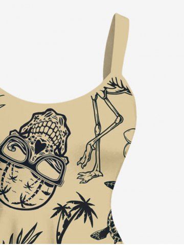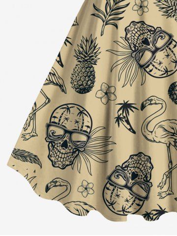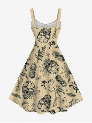 Plus Size Pineapple Skulls Flowers Leaf Flamingo Print Hawaii Tank Dress - Light Coffee - 2x