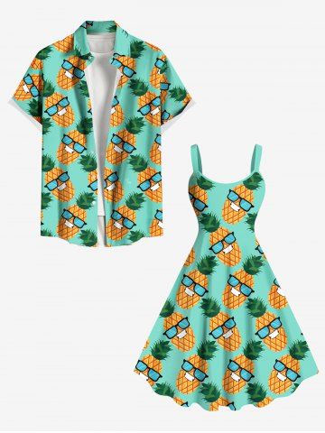 Plus Size Pineapple Sunglasses Print Hawaii Tank Dress - Green - 1x
