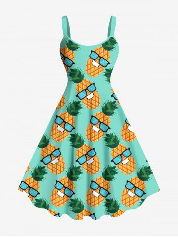 Plus Size Pineapple Sunglasses Print Hawaii Tank Dress - Green - 3x