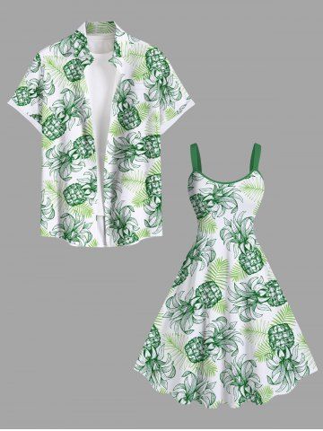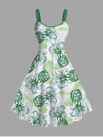 Plus Size Pineapple Tropical Leaf Print Hawaii Tank Dress - Green - 2x