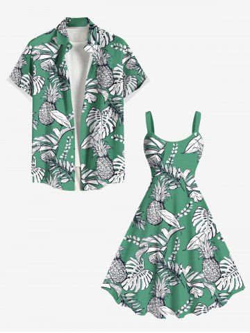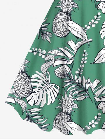 Plus Size Pineapple Tropical Leaves Branch Print Hawaii A Line Tank Dress - Green - M