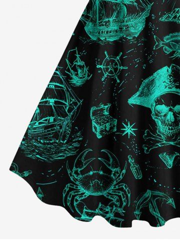 Plus Size Pirate Ship Rudder Fish Cruise Film Style Print Hawaii Tank Dress - Black - 2x
