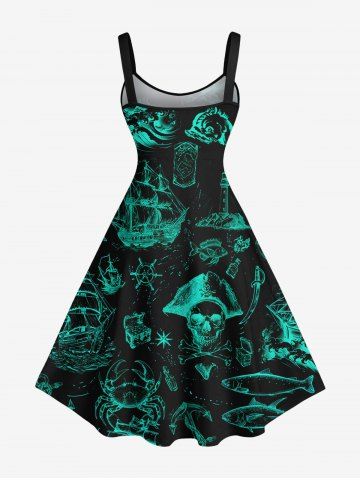 Graphic Dresses > Plus Size Pirate Ship Rudder Fish Cruise Film Style Print Hawaii Tank Dress