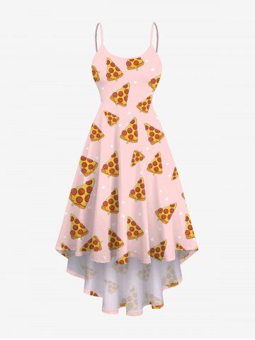 Graphic Dresses > Plus Size Pizza Print High Low Asymmetric Backless A Line Cami Dress