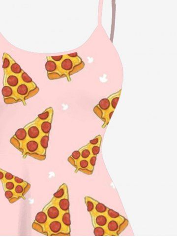 Plus Size Pizza Print High Low Asymmetric Backless A Line Cami Dress - Light Pink - 4x