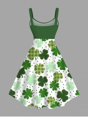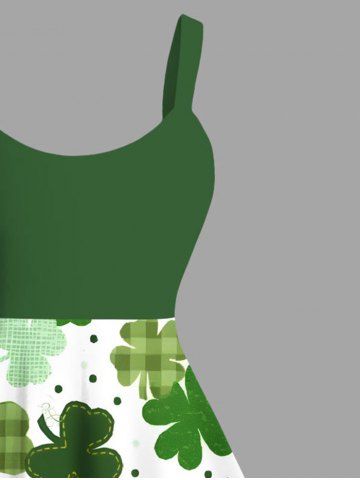 Plus Size Plaid Four Leaf Clover Pin Dot Print St. Patrick's Day Hawaii A Line Tank Dress - Green - 2x