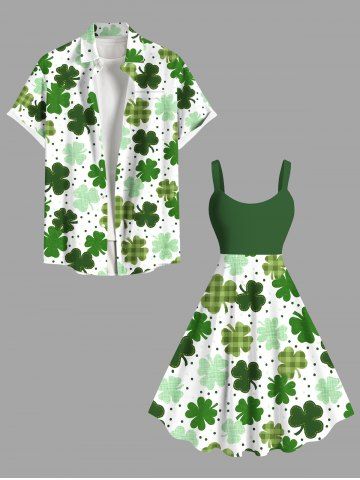 Plus Size Plaid Four Leaf Clover Pin Dot Print St. Patrick's Day Hawaii A Line Tank Dress - Green - 4x