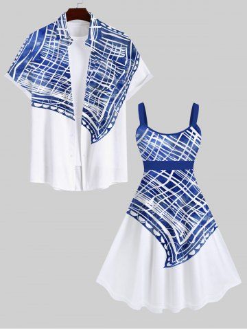 Plus Size Plaid Scarf Pattern Print Tank Dress - White - L