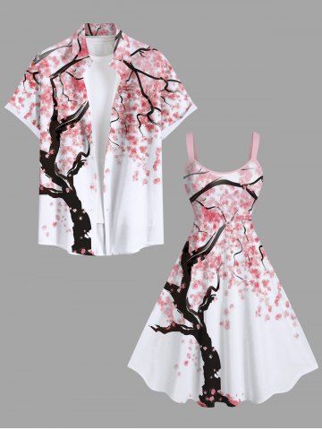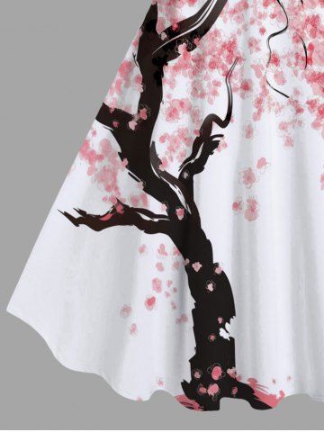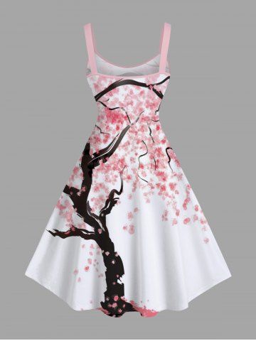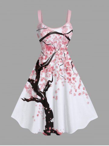 Plus Size Plum Bossom Flower Branch Print Hawaii Tank Dress - White - 6x