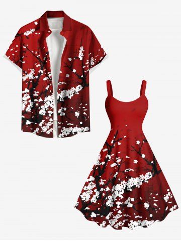 Plus Size Plum Bossom Flower Print Hawaii Tank Dress - Red - 1x