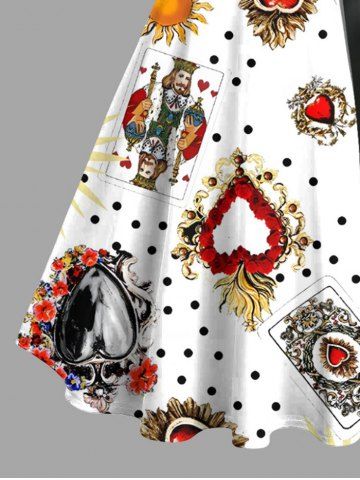 Plus Size Poker Heart Sun Spotted Print Hawaii Button A Line Dress with Removable Belt - White - L