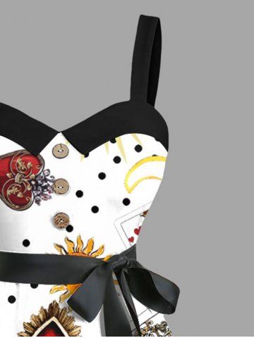 Plus Size Poker Heart Sun Spotted Print Hawaii Button A Line Dress with Removable Belt - White - 5x