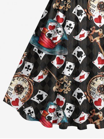 Plus Size Poker Key Clock Print Vintage Swing A Line Dress - Black - S