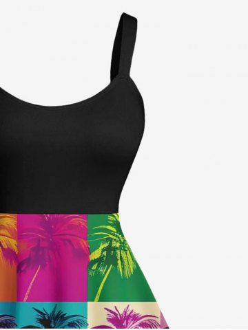 Plus Size Pop Style Coconut Tree Colorful Colorblock Print Hawaii A Line Tank Dress - Black - 5x