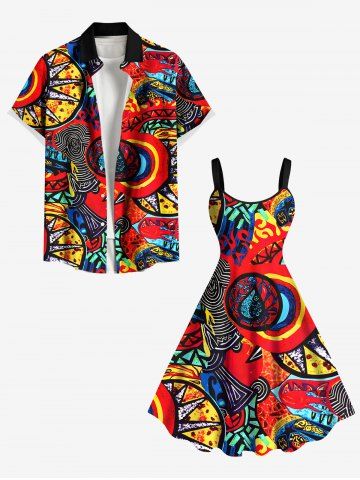 Plus Size Psychedelic Pattern Sun Fire Flame Print Hawaii Tank Dress - Red - L