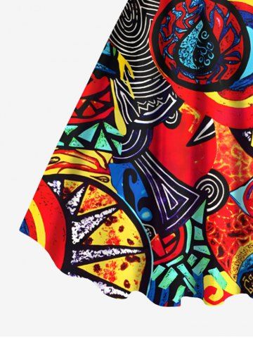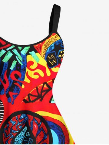 Plus Size Psychedelic Pattern Sun Fire Flame Print Hawaii Tank Dress - Red - 1x