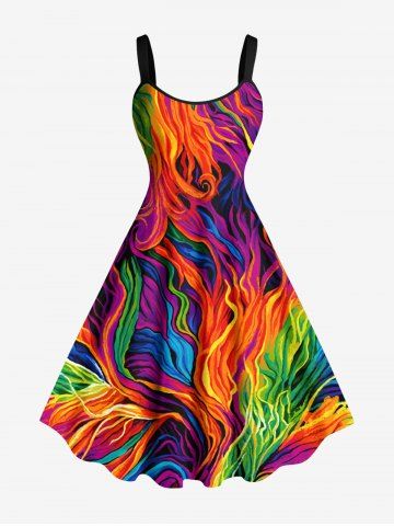 Graphic Dresses > Plus Size Rainbow Colorful Graphic Oil Painting Print Hawaii Tank Dress