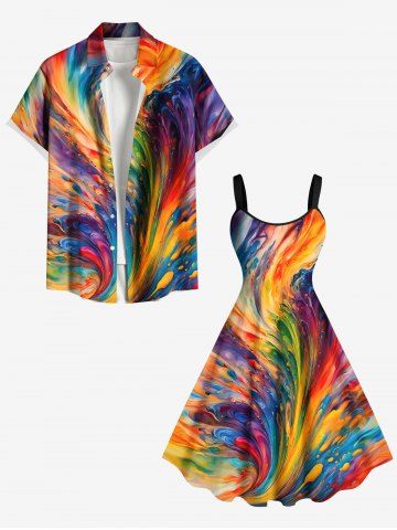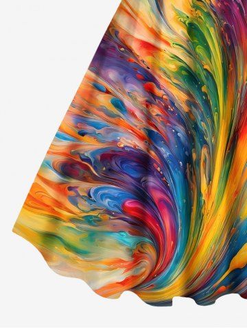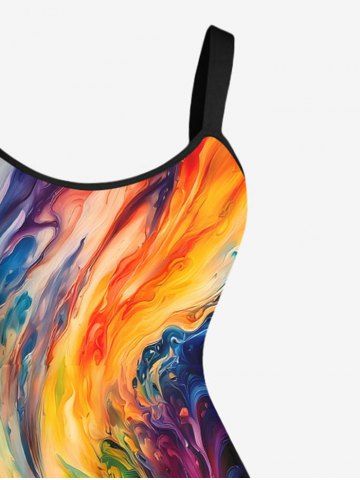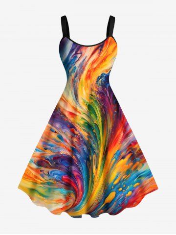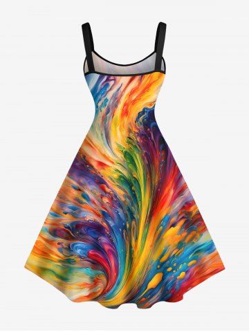Plus Size Rainbow Sea Waves Oil Painting Print Hawaii Tank Dress - Multi-a - M