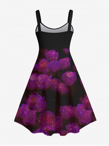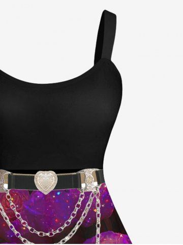 Graphic Dresses > Plus Size Rose Flower Glitter Sparkling Sequin Heart Chains Belt 3D Print Tank Party Dress