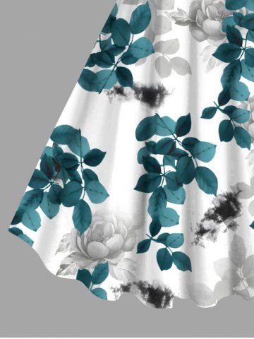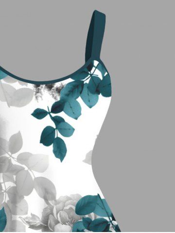 Plus Size Rose Flower Leaf Branch Print Hawaii Ombre A Line Tank Dress - White - S