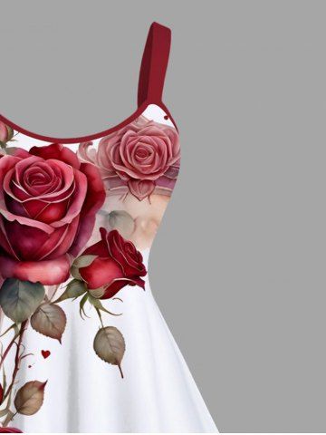 Plus Size Rose Flower Leaf Heart Print Valentines Hawaii A Line Tank Dress - Red - 2x