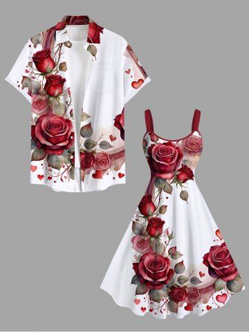 Graphic Dresses > Plus Size Rose Flower Leaf Heart Print Valentines Hawaii A Line Tank Dress