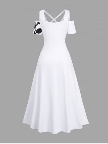 Plus Size Rose Flower Leaf Paint Drop Print Cold Shoulder Crisscross Hawaii Maxi Dress - White - S