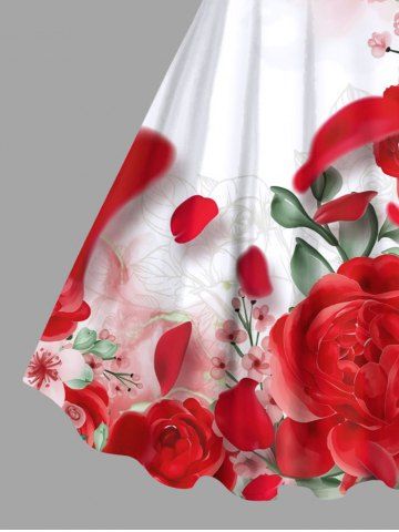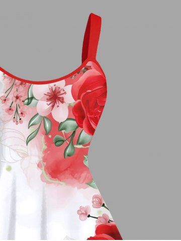 Plus Size Rose Flower Leaf Petal Print Valentines Hawaii Ombre A Line Tank Dress - Red - 3x
