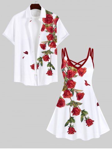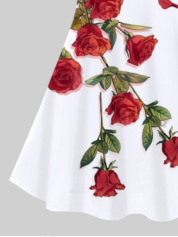 Plus Size Rose Flower Leaf Print Hawaii Crisscross A Line Cami Dress - White - 5x