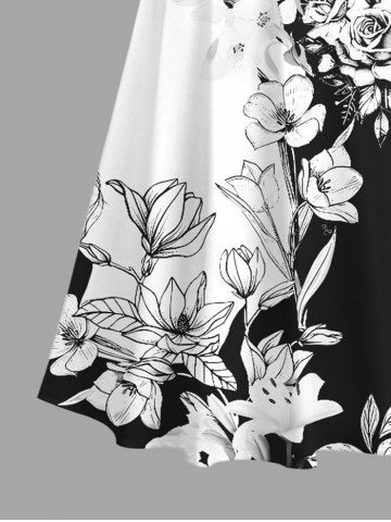 Plus Size Rose Flower Leaf Two Tone Print Hawaii Cold Shoulder Crisscross A Line Maxi Dress - White - S