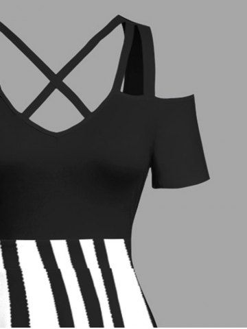 Plus Size Rose Flower Zebra Striped Print Hawaii Cold Shoulder Crisscross A Line Maxi Dress - White - 6x