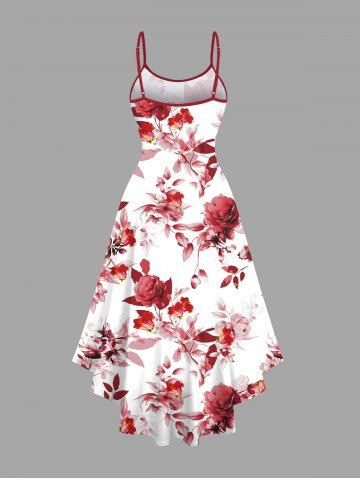 Graphic Dresses > Plus Size Rose Flowers Leaf Print High Low Hawaii Cami Dress