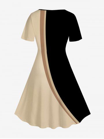 S*****a5Plus Size Rose Print Colorblock T-shirt DressColor: LIGHT COFFEE Size: 1X | US 14-16This dress looks almost 3 dimensional when you put it on. It's like the designs are jumping off the dress. Very comfortable and a nice length to.