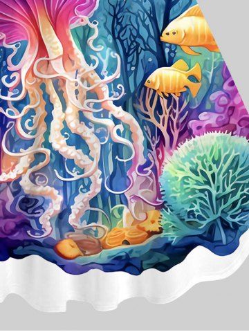 Graphic Dresses > Plus Size Sailor Coral Fish Colorful Underwater World Print Hawaii Sea Creatures Backless A Line Tank Dress