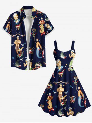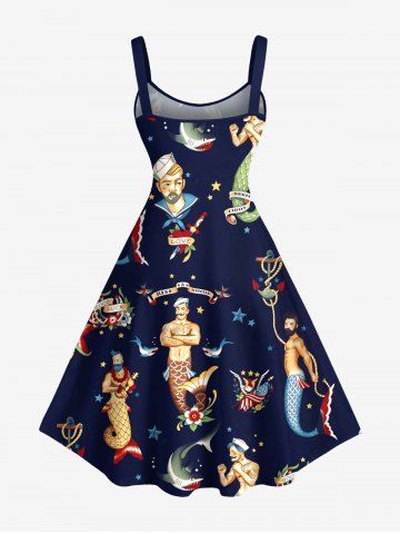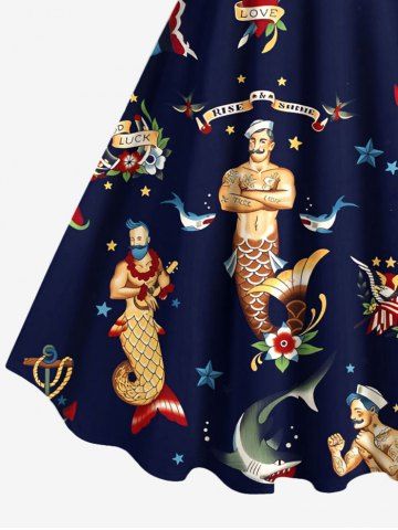 Graphic Dresses > Plus Size Sailor Mermaid Patriotic American Flag Anchor Shark Print Hawaii Cruise A Line Tank Dress