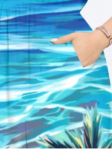 Plus Size Sea Coconut Tree Print Hawaii Split Pocket A Line Midi Dress - Blue - 4x