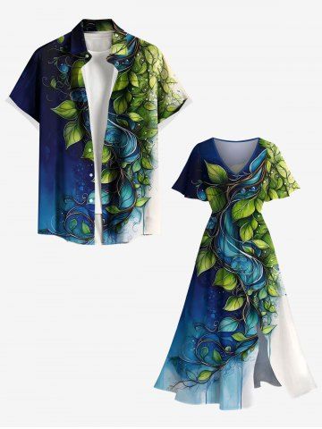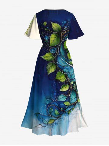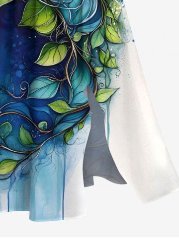 Graphic Dresses > Plus Size Sea Colorblock Flowers Leaf Print Split Hawaii Midi Dress