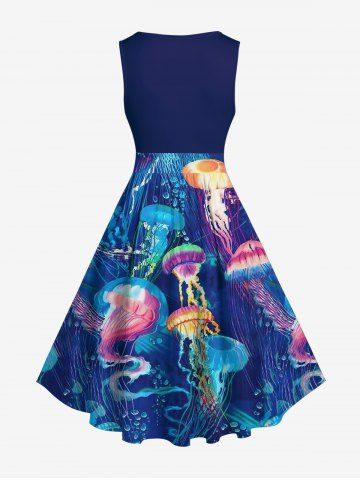 j*****e5Plus Size Sea Creatures Jellyfish Print 1950s Vintage DressColor: DEEP BLUE Size: 4XLove the colors! Fits True to size. Very Comfortable and cool.