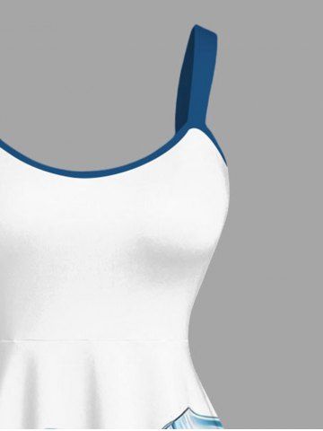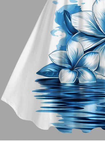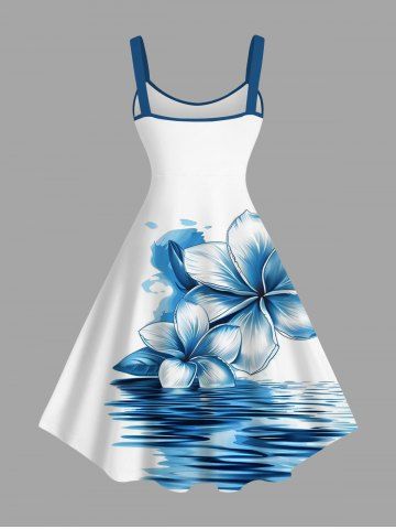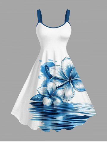 Plus Size Sea Hibiscus Flower Print Hawaii A Line Tank Dress - White - 1x